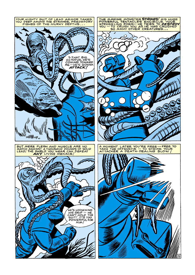 TOS #11: Page 9 ADD SOME SUSPENSE TO YOUR SUMMER READING LIST! It seems you just can't scare the love of a good 80-foot thing from another dimension out of a Marvel Masterworks fan. We’re not one to argue with anyone whose postal code reads: Unknownable Beyond, so with regrets to the mailman, prepare your post office box for the likes of Sporr, Gor-Kill, Elektro, the Colossus, Metallo, and Kraa the Unhuman! This collection from the beyond is full of more amazing monster firsts than any Masterworks we’ve yet imagined, and there’s no evidence better than the first-ever father/son space-monster invasion. Yes, it’s none other than the fan-favorites Goom, and Googam, Son of Goom! Complemented by tales of thrilling suspense and sci-fi from Marvel Founding Fathers, Steve Ditko and Don Heck, there’s a something for anyone and everyone looking for a break from the bounds of reality in Tales of Suspense! Collecting TALES OF SUSPENSE #11-20. (from official Marvel solicit)