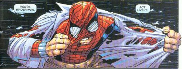 “Listen buddy. I've fought every kind of nutball on the planet. I've fought freaks, mutants, aliens and high-tech gangs. Heck, I've even fought my own costume. And you know what? You're the first one who's really ticked me off. You want me? Bring it on, chowderhead!"